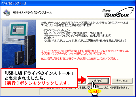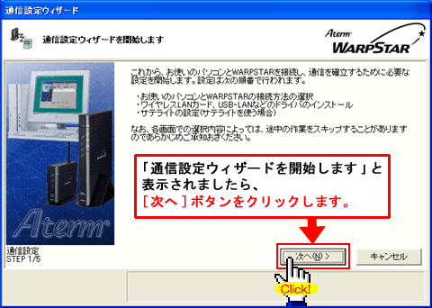 ・画面上で指示があるまで、パソコンとAtermをUSBケーブルで接続しないでください。
