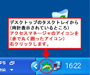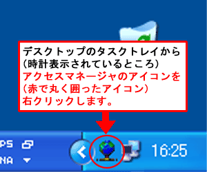 アクセスマネージャのアイコンで、インターネットへの接続状態を確認することができます。