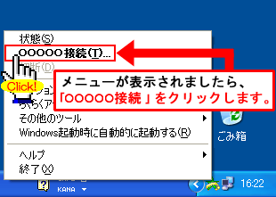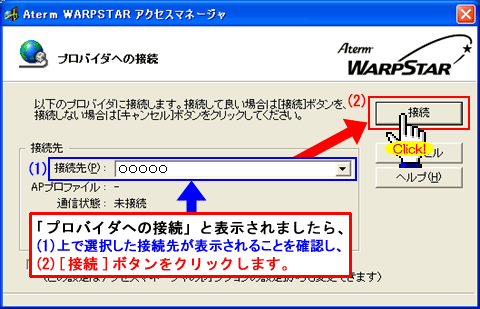 上図での、「○○○○○接続」にはStep2で作成した接続先名が入ります。