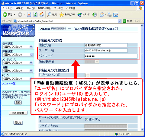 入力する「ログインID」「パスワード」は、プロバイダによって異なります。