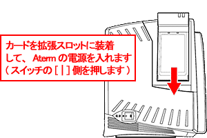 カードの抜き差しは、無線LANアクセスポイント(親機)の電源を切った状態で行ってください。カード装着後に、電源を入れるとカードのランプが同時点滅します。