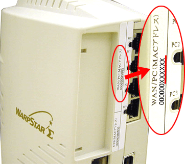 | 工場出荷時のネットワーク名は、[WARPSTAR-XXXXXX](XXXXXXはWB55TLの側面に記載されている10BASE-T(MACアドレス)の下6桁です)。 |