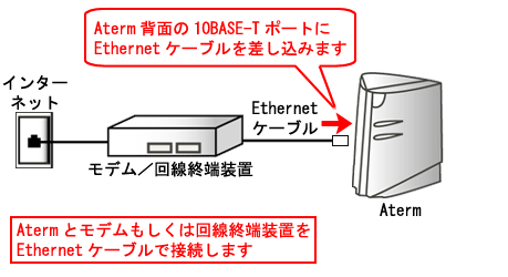 AtermとパソコンをEthernetポート(10BASE-T/100BASE-TX)で接続される場合は、パソコンにEthernetポートがあるかどうかを確認してください。 【確認/対策方法】 確認方法と対策方法の詳細は、パソコンメーカーにご相談ください。 |
