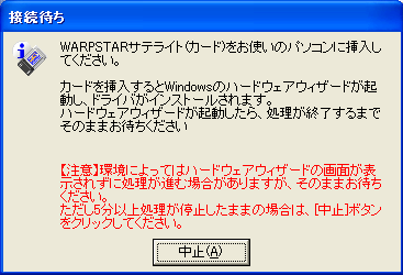 この画面が表示されましたら、パソコンにWL11C/WL11CAを装着してください。 |