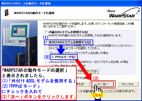 Windows(R) XP Service Pack 2(SP2)をご利用の場合、Step1に「」マークが表示され、以降の手順が行えないことがあります。このような場合は、クイック設定Webで以降の設定を行ってください。>こちらへ