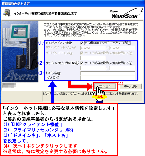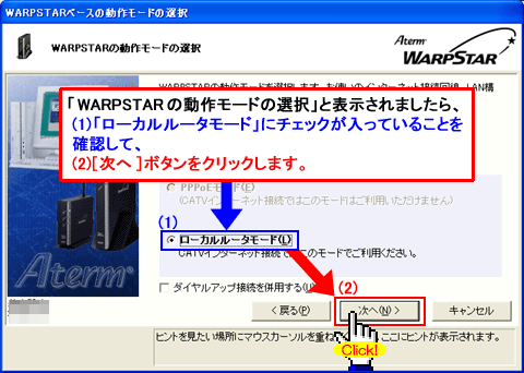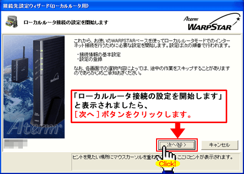 」マークが表示され、以降の手順が行えないことがあります。このような場合は、クイック設定Webで以降の設定を行ってください。