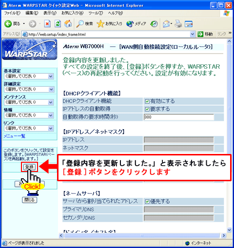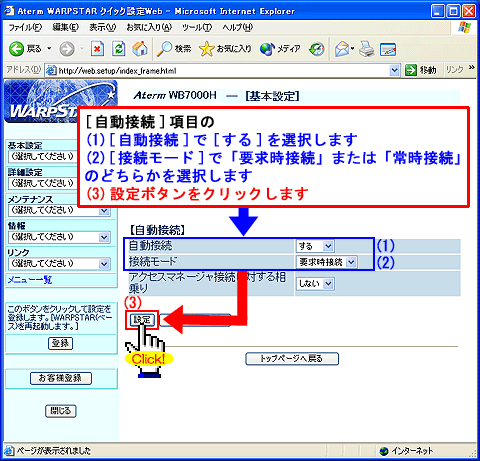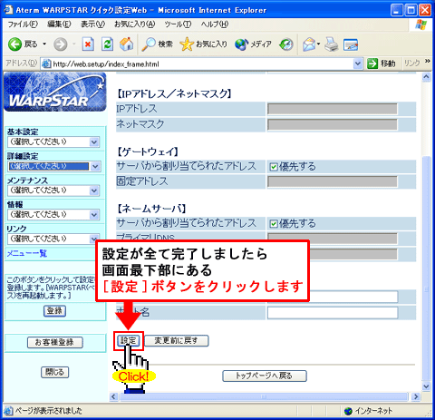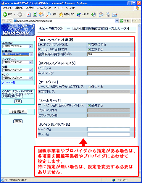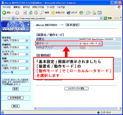 WARPSTARのインターネット接続基本設定を行います