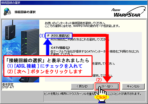 [利用するプロバイダの情報を設定します]と表示されましたら、