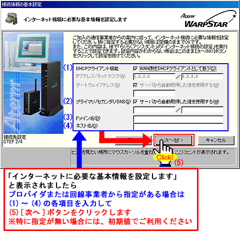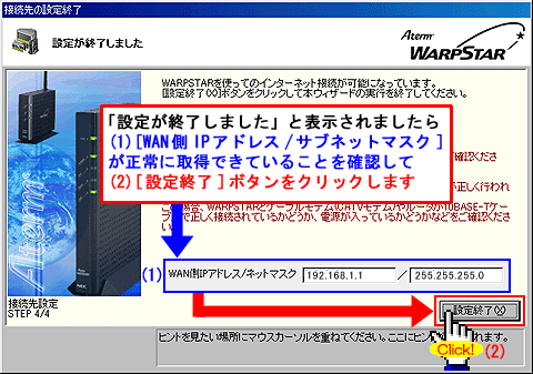 回線終端装置と正しく接続されているにも関わらず、IPアドレスが取得できない場合は、回線終端装置と無線LANアクセスポイント(親機)で、同じIPアドレスを使用している可能性があります。このような場合、無線LANアクセスポイント(親機)のIPアドレスの変更が必要となります。