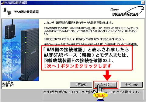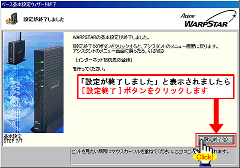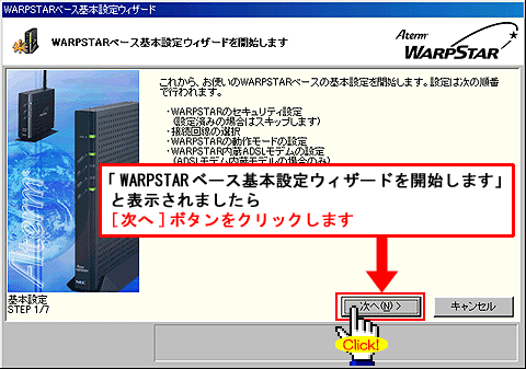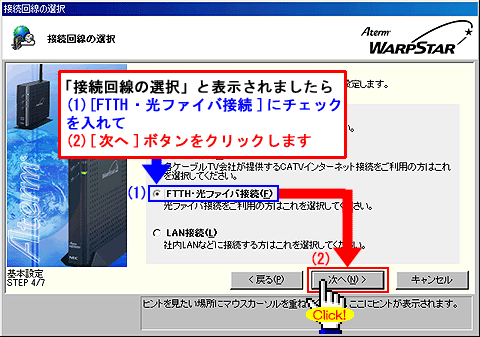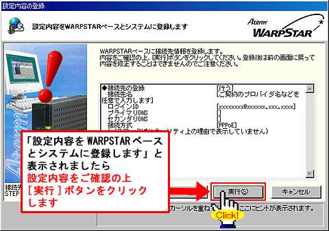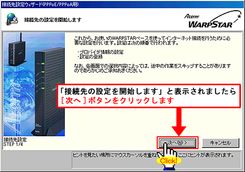 [利用するプロバイダの情報を設定します]と表示されましたら、