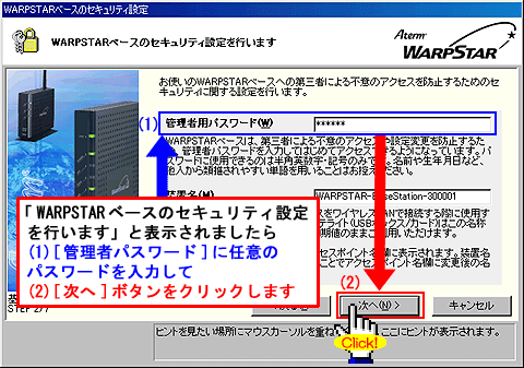 既に一度セキュリティ設定を行っている場合は「セキュリティ設定はすでに実行済みです」と表示されます。そのまま[次へ]ボタンをクリックして次の手順に進んでください。 |