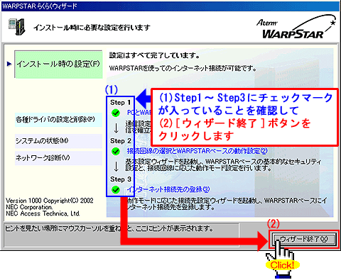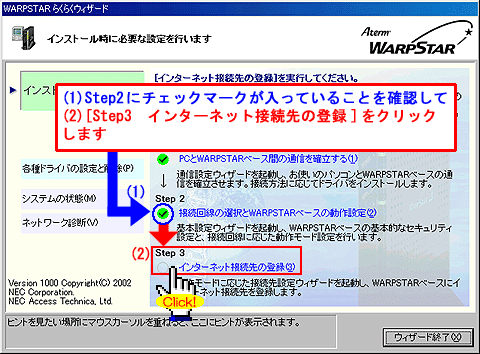 ログインID、パスワード等の設定を行いますので、ご契約のプロバイダの資料をご用意ください。 |