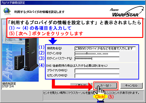 (2)ログインIDにプロバイダ指定のログインID(ユーザID)を入力