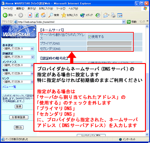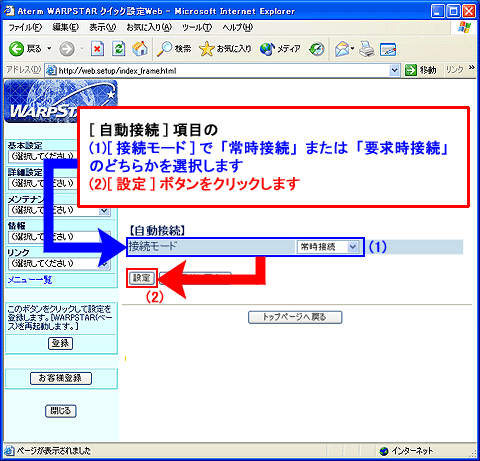 ※クイック設定WebにはWWWブラウザソフトが必要になります。