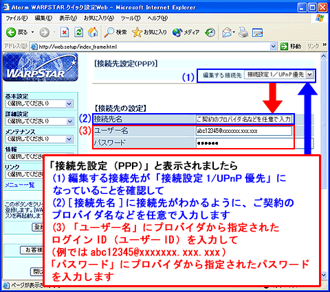 入力する「ログインID」「パスワード」は、プロバイダによって異なります。