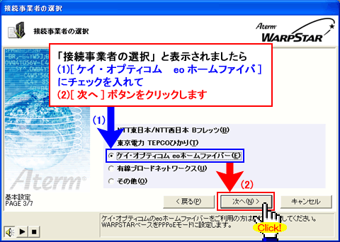 Windows(R) XP Service Pack 2(SP2)をご利用の場合、Step2に「 」マークが表示され、以降の手順が行えないことがあります。このような場合は、クイック設定Webで以降の設定を行ってください。>こちらへ |