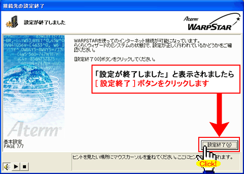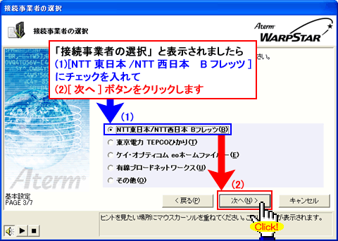 Windows(R) XP Service Pack 2(SP2)をご利用の場合、Step2に「 」マークが表示され、以降の手順が行えないことがあります。このような場合は、クイック設定Webで以降の設定を行ってください。>こちらへ |