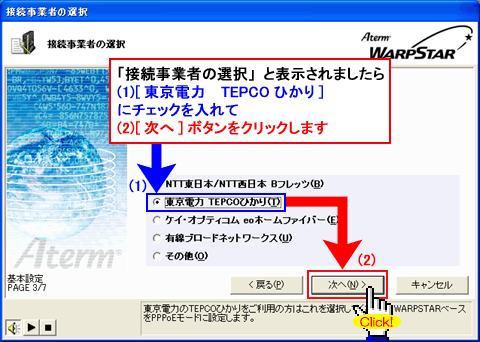 [利用するプロバイダの情報を設定します]と表示されましたら、