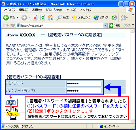 すでに一度管理者パスワードの設定を行っている場合は、当画面は表示されません。