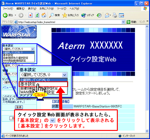 Atermとブロードバンド接続機器のIPアドレスが同じだった場合、AtermのIPアドレスを変更します。