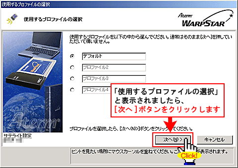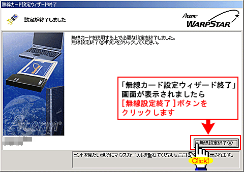 この画面が表示されましたら、パソコンにWL11U/WL11U(W)を装着してください。 |