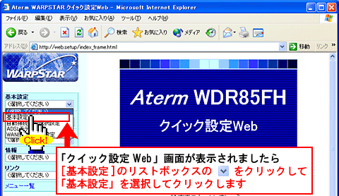 WWWブラウザソフト(InternetExplorerなど)を起動します。