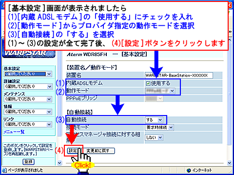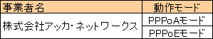 主な事業者の「動作モード」は以下の通りです。わからない場合は、ご契約のプロバイダにご確認ください。