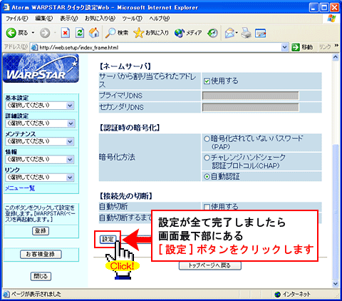 設定が完了いたしましたらWWWブラウザソフト(InternetExplorerなど)を一旦閉じます。 |