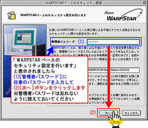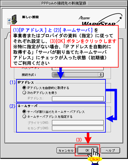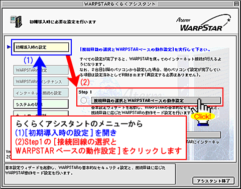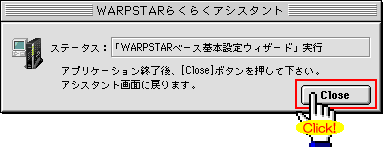 [WARPSTAR内蔵ADSLモデムの各種パラメータを設定します]と表示されましたら、