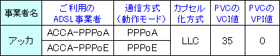[WARPSTAR内蔵ADSLモデムの各種パラメータを設定します]と表示されましたら、