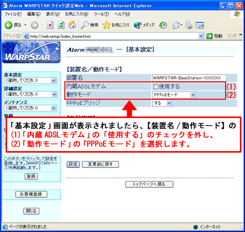 モデム(または、回線終端装置)の設定等が完了していることを前提として説明しています。