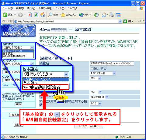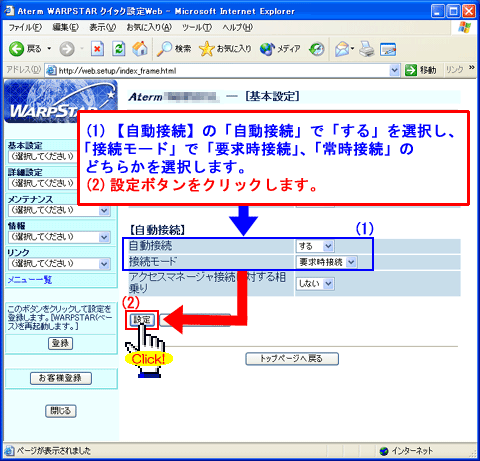 ※クイック設定WebにはWWWブラウザソフトが必要になります。