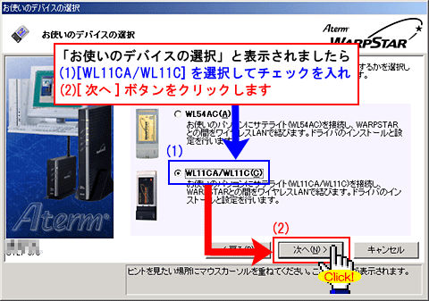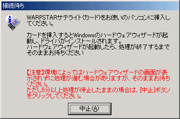 この画面が表示されましたら、パソコンにWL11C/WL11CAを装着してください。 |