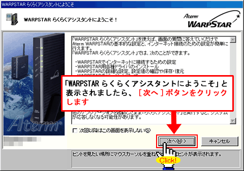 「次回以降はこの画面を表示しない」にチェックを入れた場合は表示されません。