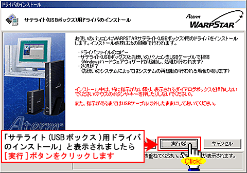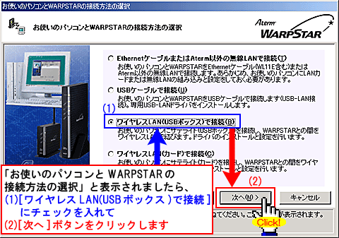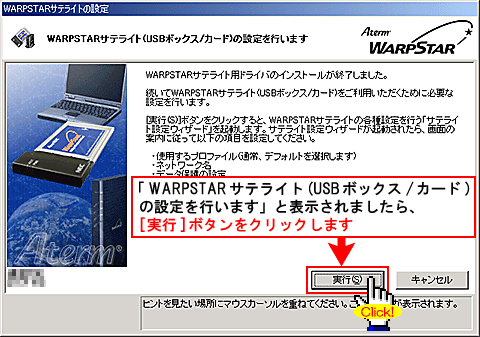 この画面が表示されましたら、パソコンにWL11U/WL11U(W)を装着してください。 |
