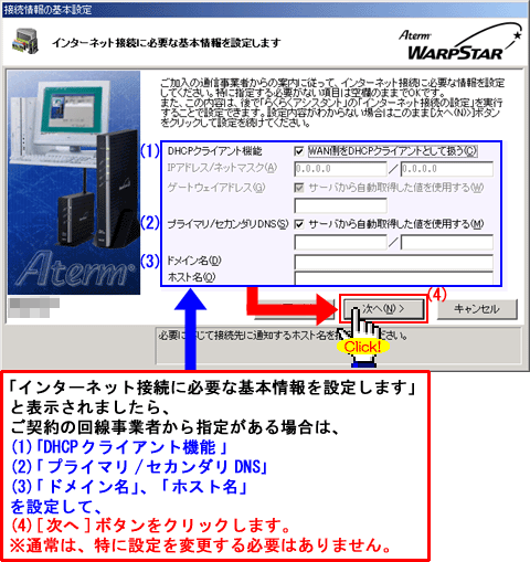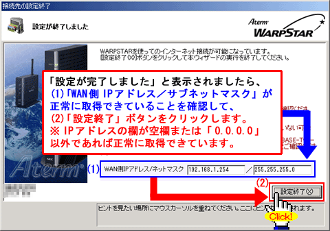 ケーブルモデムと正しく接続されているにも関わらず、IPアドレスが取得できない場合は、ケーブルモデムと無線LANアクセスポイント(親機)で、同じIPアドレスを使用している可能性があります。このような場合、無線LANアクセスポイント(親機)のIPアドレスの変更が必要となります。