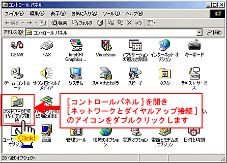 コントロールパネルを開きます。