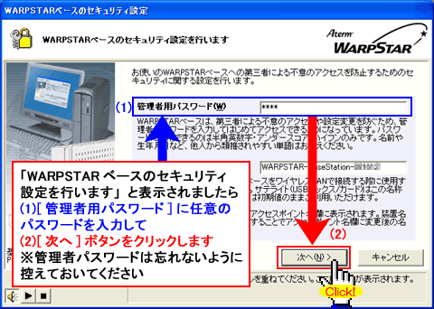 既に一度セキュリティ設定を行っている場合は「セキュリティ設定はすでに実行済みです」と表示されます。そのまま[次へ]ボタンをクリックして次の手順に進んでください。 |