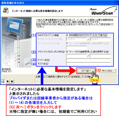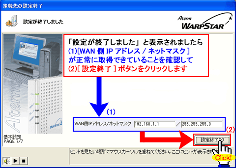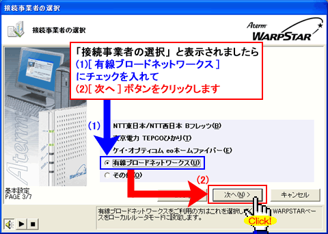 Windows(R) XP Service Pack 2(SP2)をご利用の場合、Step2に「 」マークが表示され、以降の手順が行えないことがあります。このような場合は、クイック設定Webで以降の設定を行ってください。>こちらへ |