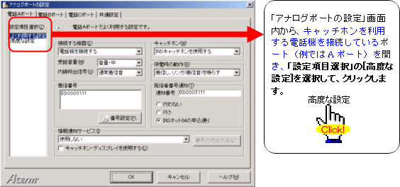 注:FAXやモデムを接続したポートには、キャッチホンを設定しないでください。通信中に割込音が入ると、通信エラーとなります。
