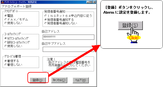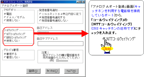 注:FAXやモデムを接続したポートには、キャッチホンを設定しないでください。通信中に割込音が入ると、通信エラーとなります。