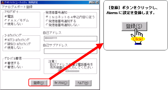 注:FAXやモデムを接続したポートには、キャッチホンを設定しないでください。通信中に割込音が入ると、通信エラーとなります。