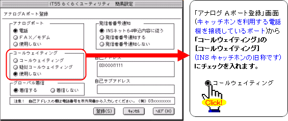 注:FAXやモデムを接続したポートには、キャッチホンを設定しないでください。通信中に割込音が入ると、通信エラーとなります。