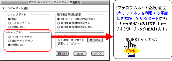 注:FAXやモデムを接続したポートには、キャッチホンを設定しないでください。通信中に割込音が入ると、通信エラーとなります。