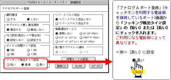 フッキングがうまく働かないとき(キャッチホンの切り替えができないときなど)は、以下の手順でフッキング検出タイマを調整してください。