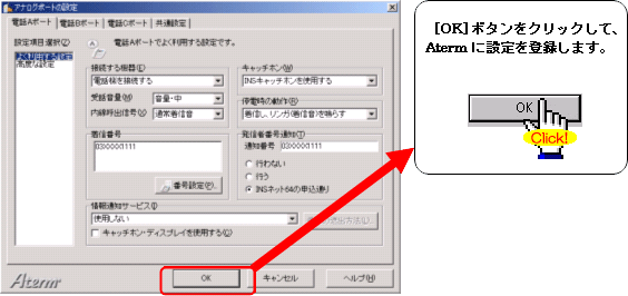 注:FAXやモデムを接続したポートには、キャッチホンを設定しないでください。通信中に割込音が入ると、通信エラーとなります。