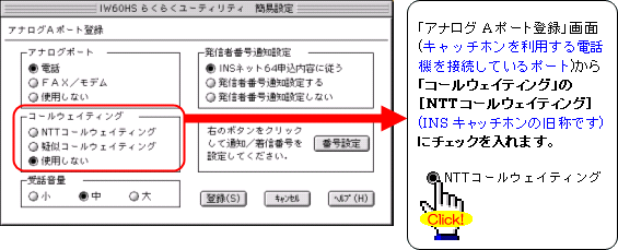 注:FAXやモデムを接続したポートには、キャッチホンを設定しないでください。通信中に割込音が入ると、通信エラーとなります。