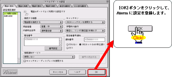 注:FAXやモデムを接続したポートには、キャッチホンを設定しないでください。通信中に割込音が入ると、通信エラーとなります。