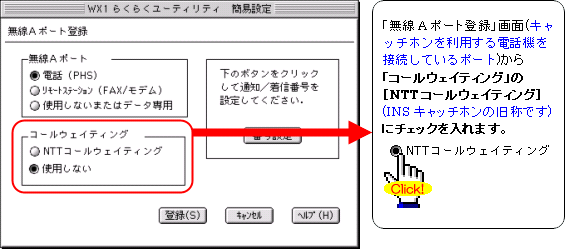 注:FAXやモデムを接続したポートには、キャッチホンを設定しないでください。通信中に割込音が入ると、通信エラーとなります。