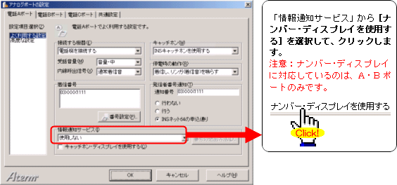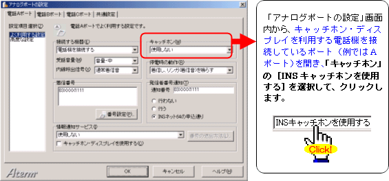 注:FAXやモデムを接続したポートには、キャッチホンを設定しないでください。通信中に割込音が入ると、通信エラーとなります。